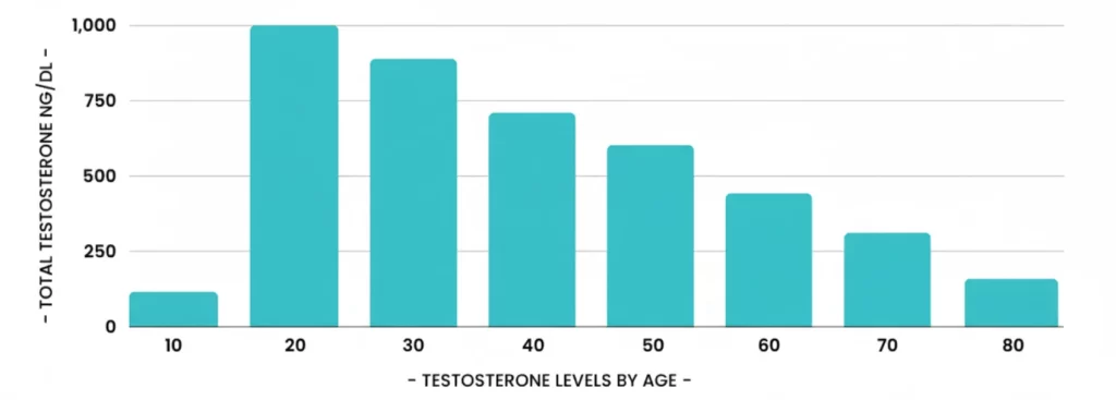 During puberty, testosterone levels reach their peak and start declining after the age of 30. Unfortunately, in the past 20 years, a significant decline in testosterone levels has been observed in men, which has never been witnessed before in history.